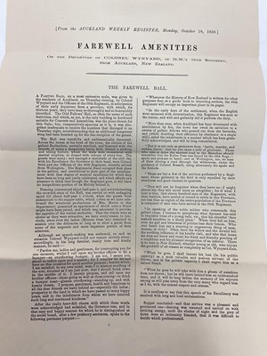 Lot 83 - Of New Zealand Interest, two printed 'Farewell Amenities' dated October 18th, 1858, on the departure of Colonel Wynyard, of H.M.'s 58th Regiment from Auckland, New Zealand, a printed account of...