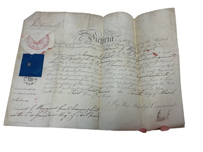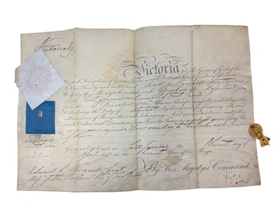 Lot 89 - H.M. Queen Victoria signed Officer's commission appointing Edward G. Wynyard an Ensign and Lieutenant in the Ist Grenadier Regiment of Foot Guards, dated 7th March 1838