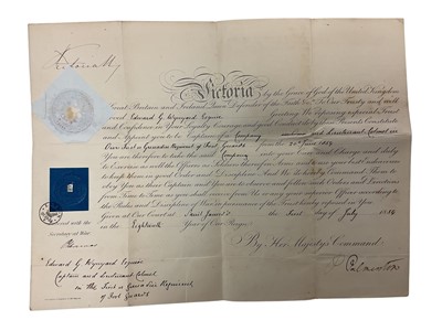 Lot 90 - H.M. Queen Victoria, signed Officer's Commission appointing Edward G Wynyard a Lieutenant Colonel in the First Grenadier Regiment of Foot Guards, dated 1st July 1854