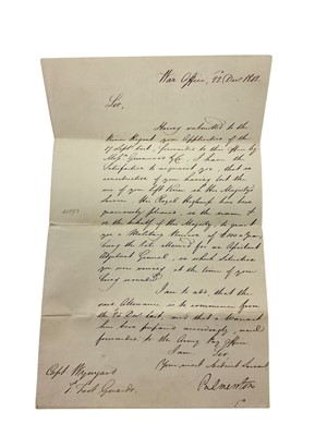 Lot 91 - His Grace The Duke of Wellington K.G., signed order appointing Major General E.B.Wynyard C.B. in command of the 58th Regiment dated 3rd February 1851, another order signed by Lord Palmerston all...